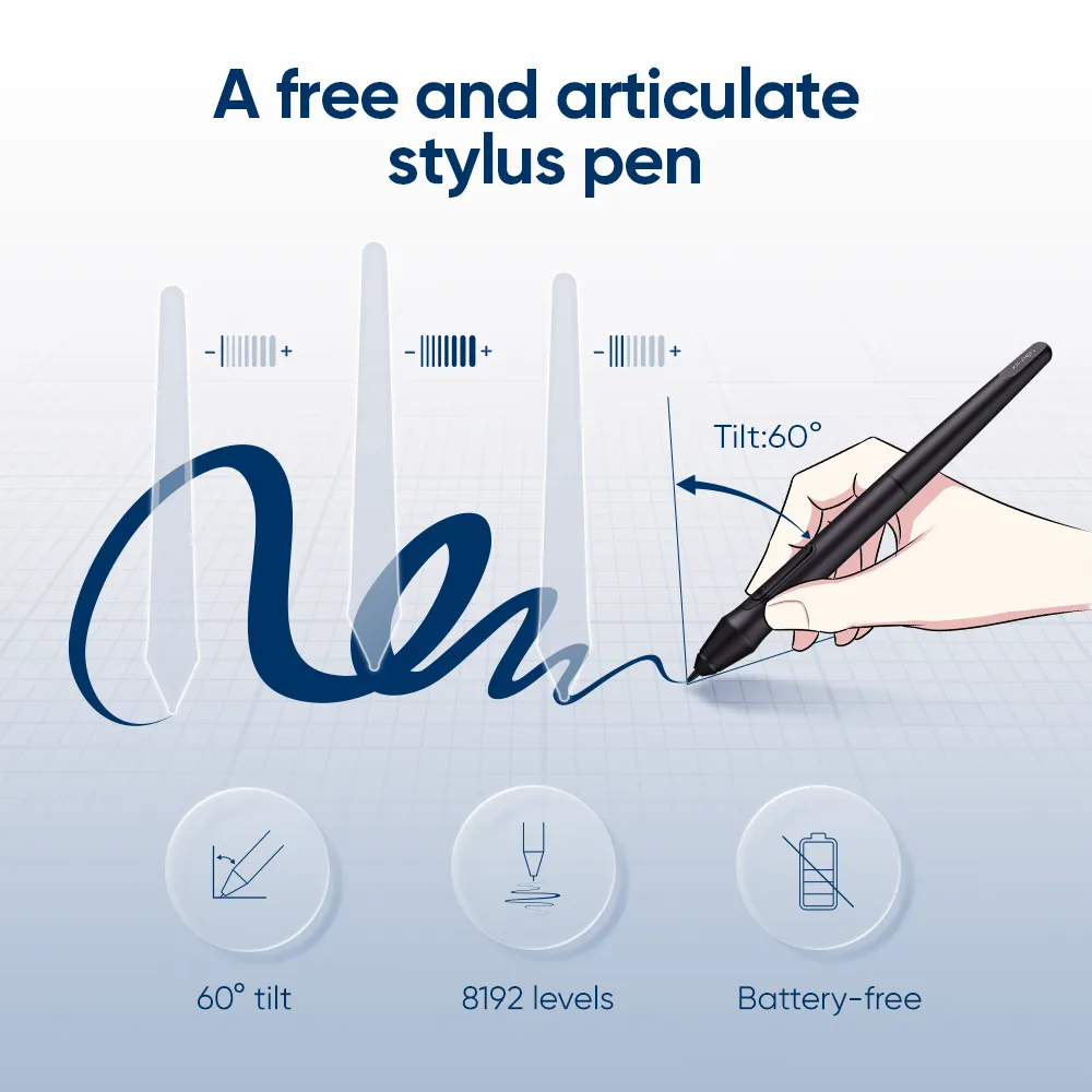 The stylus supports up to 60 degrees of tilt brush effect and delivers smoother and more natural lines and strokes, while also giving you the ability to add shading to your creation and offering a more natural writing and drawing experience.